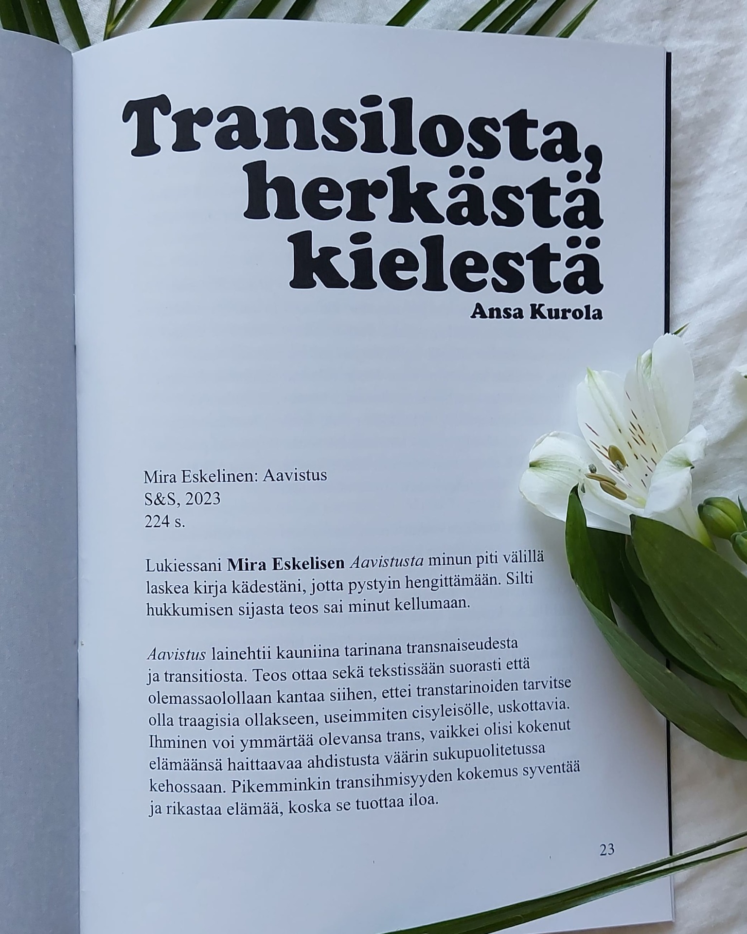 Käkriäinen 2/2023 Kritiikki Mira Eskelisen Aavistus-romaanista